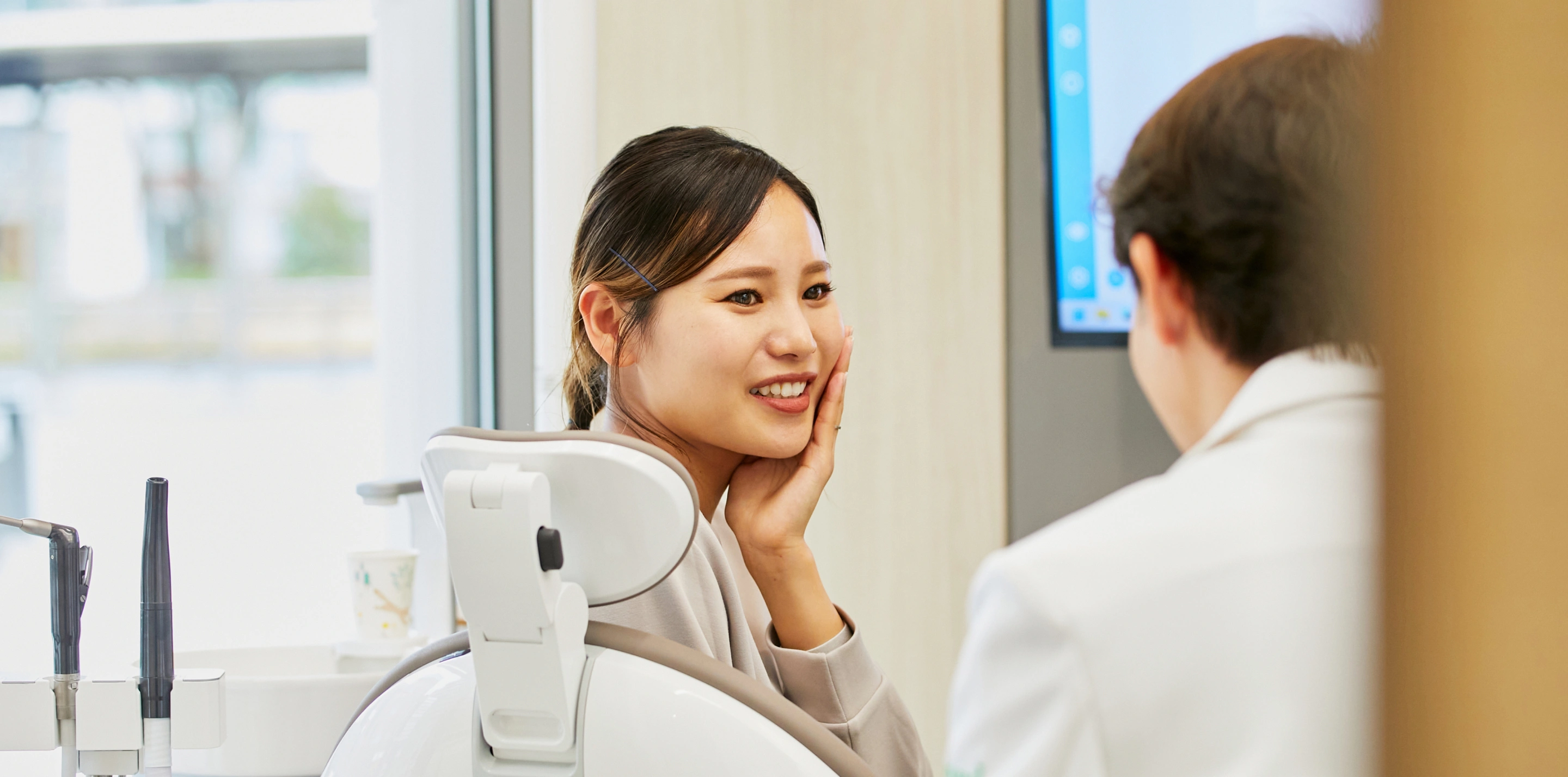 歯のお悩み以外にも、口内炎や顎関節症、味覚の違和感などお口に関する色々なお悩みをご相談いただけます。お薬や治療で治すだけではなく、問診を通して全身の健康状態とお口の状態をチェックし、原因などを内科的なアプローチから探っていきます。