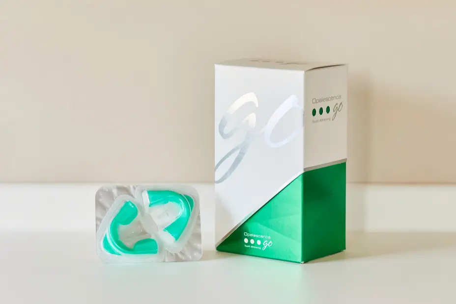 ホームホワイトニングでは、従来の型取り不要で既成のマウスピースを使用し、それを1日90分程度装着します。比較的低濃度な薬剤での漂白となるため、奥歯の方までホワイトニングすることができます。また長時間かけて漂白するため、歯の内側の象牙質の黄ばみまでを白くし、効果も長持ちします。
